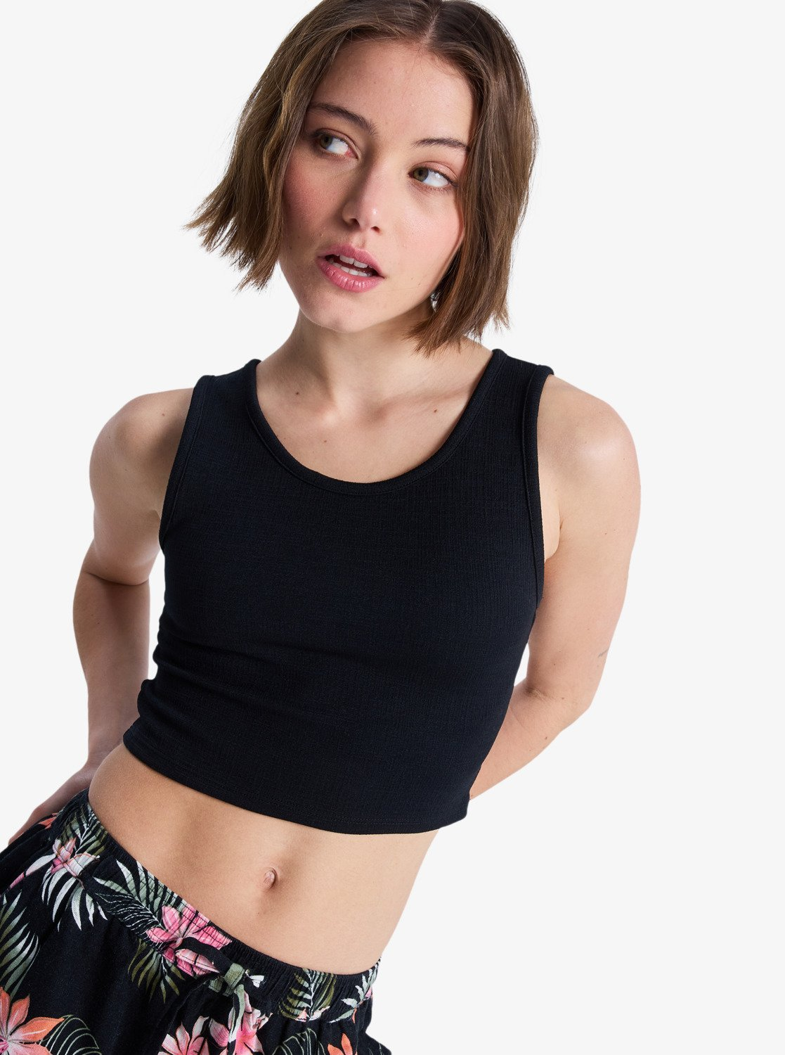 Passform: figurbetonte PassformHals: RundhalsausschnittÜberkreuztes Detail am offenen RückenZusammensetzung